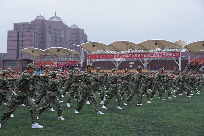 9月12日上午8:00,內蒙古大學2014年學生軍訓匯報暨總結表彰大會伴隨著整齊劃一的步伐、振奮人心的軍歌,在北校區(qū)和南校區(qū)同時舉行。