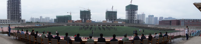 在此起彼伏的“同學們好”、“首長好”、“同學們辛苦了”、“為學校增光”的口號中,我校黨委書記朱炳文、校長陳國慶檢閱了學生各團軍訓方隊,同學們以標準的軍姿、飽滿的熱情迎接了領導的檢閱。