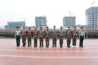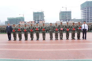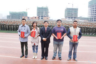 我院六個連隊(14連、15連、19連、21連、23連、24連)獲得優(yōu)秀連隊稱號;五個連隊(15、16、18、19、22連)獲得內務衛(wèi)生優(yōu)秀連隊稱號;學工處學生管理科科長崔建軍獲得優(yōu)秀學院指導員稱號;八名教官張文博、賀鵬程、王冠斌、王浩天、王劍飛、侯宇杰、楊凱、周廣華獲得優(yōu)秀連長稱號;八名教師苗冬梅、白宇杰、任建偉、張永亮、周雪瓊、劉婷、趙廷斌、董小紅獲得優(yōu)秀連隊指導員稱號;三十二名新生獲得軍事技能訓練優(yōu)秀標兵稱號。