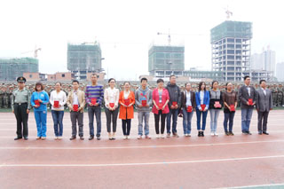 與會領導為獲得軍事訓練優(yōu)秀連隊、內務衛(wèi)生優(yōu)秀連隊、優(yōu)秀連隊指導員、優(yōu)秀學院指導員、優(yōu)秀連長、軍事技能訓練優(yōu)秀標兵稱號的集體和個人頒獎。