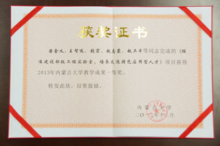 我院以柴金義院長牽頭,王智遠(yuǎn)副教授、張宏副教授、趙志蒙教授與趙衛(wèi)平教授為主要參加人的《瞄準(zhǔn)建設(shè)部級工程實驗室,培養(yǎng)交通特色應(yīng)用型人才》教學(xué)成果榮獲學(xué)校授予的校級教學(xué)成果獎一等獎。并在2014年9月11號內(nèi)蒙古大學(xué)召開2014年本科教學(xué)工作會議上頒發(fā)了獲獎證書。