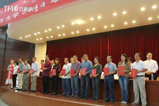 內(nèi)蒙古大學(xué)2013年校級教學(xué)成果一等獎的獲獎代表上臺領(lǐng)獎 |