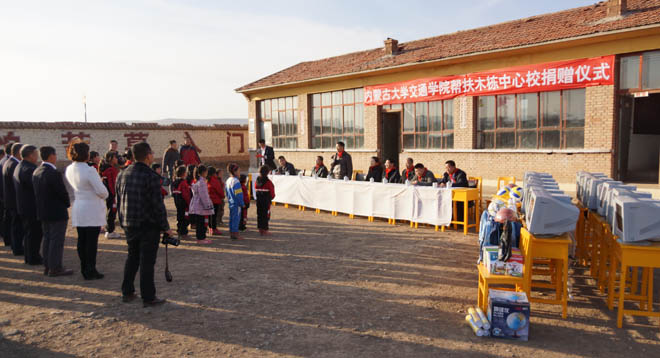 校園快訊:近日,內(nèi)蒙古大學(xué)交通學(xué)院幫扶興和縣鄂爾棟鎮(zhèn)木棟村中心校捐贈(zèng)儀式在木棟中心校舉行。據(jù)了解,內(nèi)蒙古大學(xué)交通學(xué)院于6月份進(jìn)駐學(xué)院扶貧點(diǎn)進(jìn)行深入細(xì)致調(diào)研,了解扶貧村現(xiàn)狀,初步明確了對(duì)口幫扶工作方向,并深入組織實(shí)施。