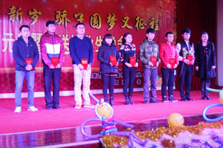 晚會上,黨委副書記、紀(jì)委書記白托婭為評選出的2014年優(yōu)秀社團(tuán)頒獎。旋風(fēng)劇團(tuán)李加欣、瘋狂英語協(xié)會于佳偉、嘻哈舞月天社團(tuán)劉曉賀、足跡文苑社團(tuán)崔樂樂獲得文藝匯演類獎;優(yōu)頌創(chuàng)業(yè)科研實踐社團(tuán)趙建波獲得科技創(chuàng)新類獎;博弈棋牌社劉秀江獲得體育風(fēng)尚類獎;微塵志愿者協(xié)會郝雪嬌獲得愛心公益類獎。感謝他們在每次晚會及活動中為我院提供的優(yōu)秀文藝節(jié)目。
