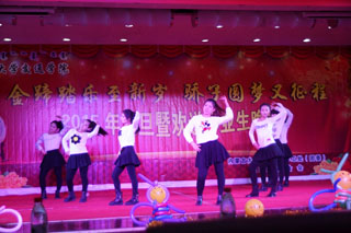 晚會以舞蹈《開門紅》正式拉開帷幕。共分為兩個篇章:以歌曲《拜新年》、舞蹈《閃耀的世界》、啞劇《診室風(fēng)波》、舞蹈《宮商角徵羽》、歌曲《我的父親是牧馬人》、小品《鬧元旦》表達(dá)第一篇章“駿馬踏蹄辭舊歲,羚羊翹首迎新來”,表達(dá)了對同學(xué)們新年的美好祝愿。同學(xué)們用自己的表演方式給老師和同學(xué)們帶來快樂,精彩的演出更是讓觀眾們掌聲不斷;以歌曲《畢業(yè)歌》、舞蹈《黎明》、朗誦《匆匆那年》、歌伴舞《為你寫詩》、小品《與青春有關(guān)的日子》、歌曲《相親相愛》詮釋了第二篇章“驕子圓夢展宏圖,學(xué)府育才奏華章”,表達(dá)了對畢業(yè)生的不舍以及母校師生對他們的祝福。畢業(yè)生代表們,用舞蹈、朗誦、小品的精彩演出,告訴母校,他們的不舍和對母校真摯的祝愿。在觀看過程中,很多畢業(yè)生都留下了眼淚。